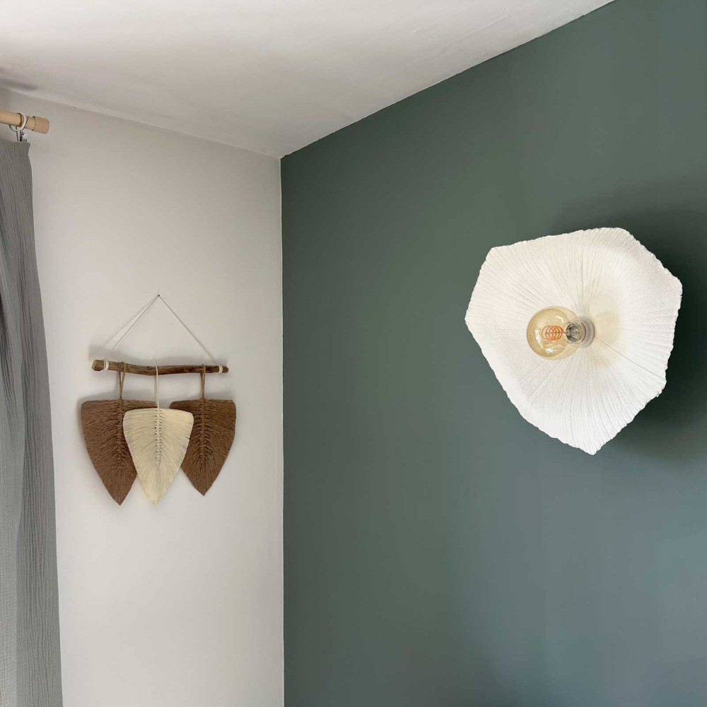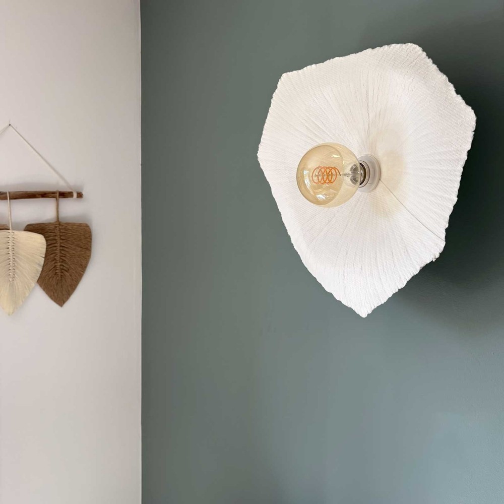 Applique luminaire en cannage avec abat-jour en papier mâché