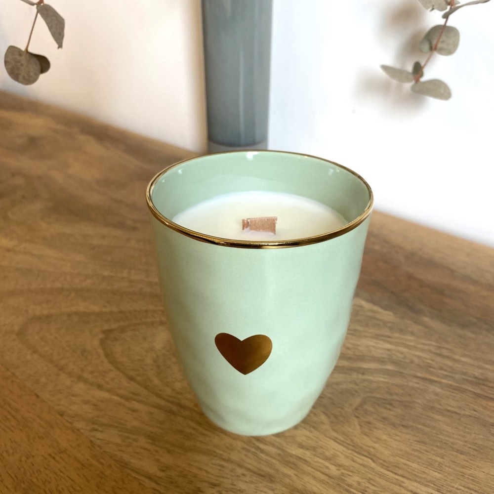 Bougie végétale - Tasse amour vert matcha - Fleur de tiaré
