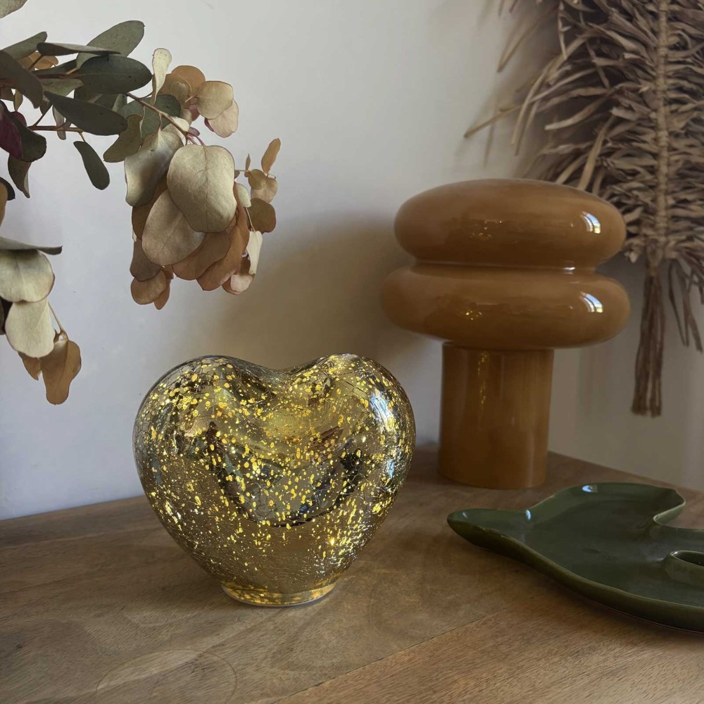 Lampe décorative champi verre strié ambré LED à piles